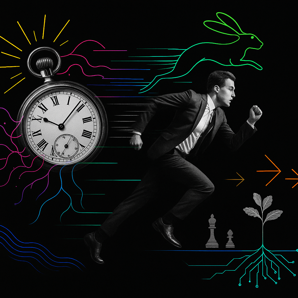 Think of organizations as marathon runners who wake up to discover the race has become a sprint, then an obstacle course, then, with every fresh disruption, a chase scene straight out of an action movie. Waiting for things to slow down is like standing still on a conveyor belt—except it’s not the scenery that changes, it’s you who’s being hurled backwards. Every day spent motionless is a day lost to the whirlwind of new technologies, shifting demands, and unexpected crises.